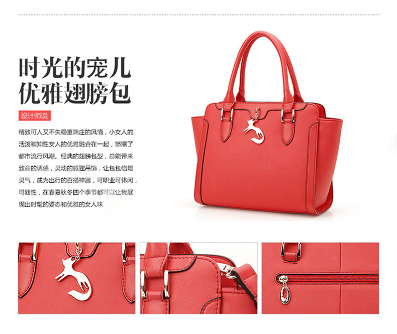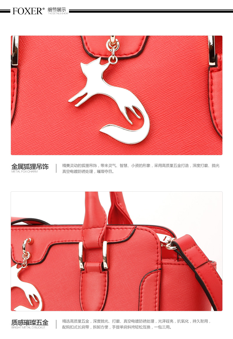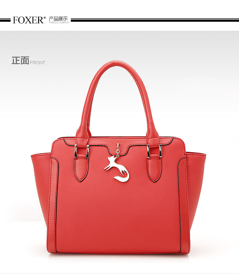 > 金狐狸(FOXER)女包 新款牛皮十字纹狐狸吊饰优雅翅膀包时尚百搭斜挎手提单肩包女6F 958091F玫瑰金