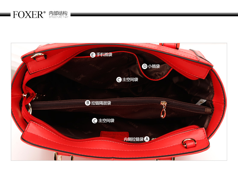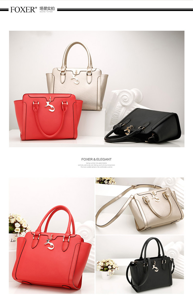 金狐狸(FOXER)新款女士大包单肩包欧美时尚锁链印花牛皮手提斜挎女包958088F 黑色