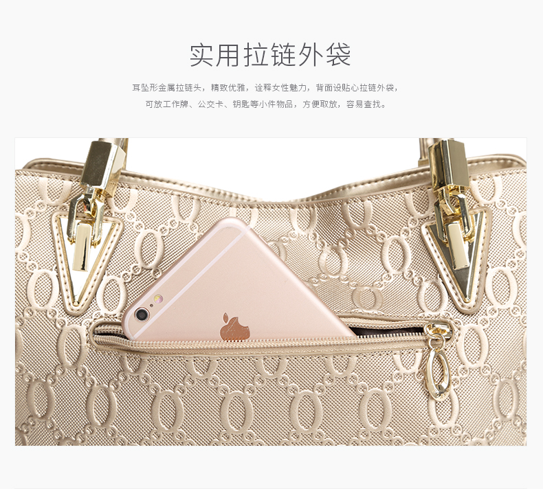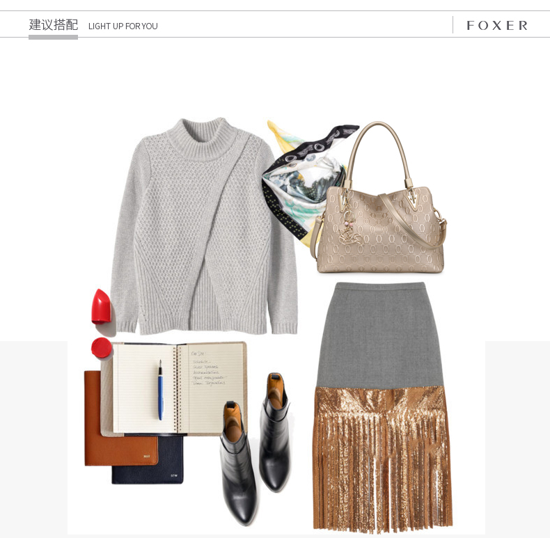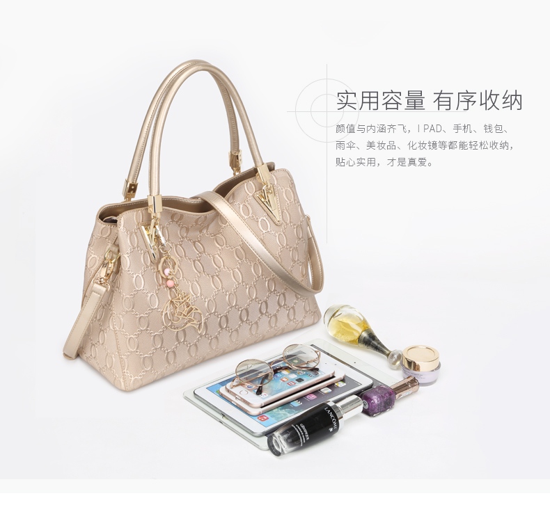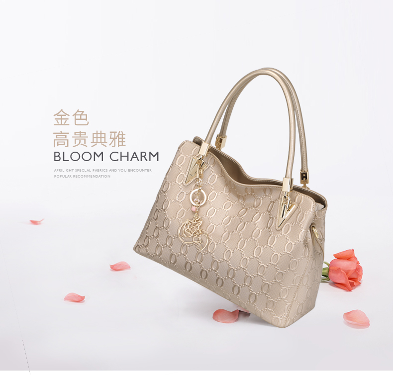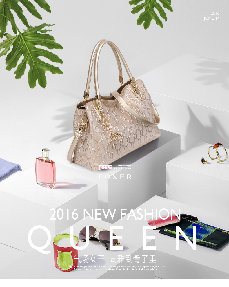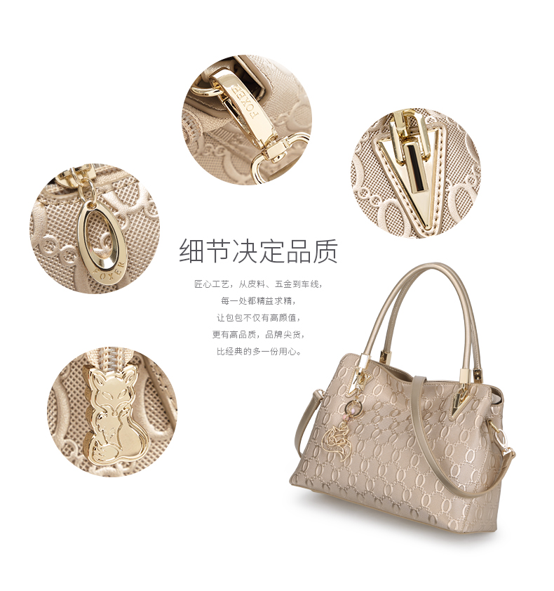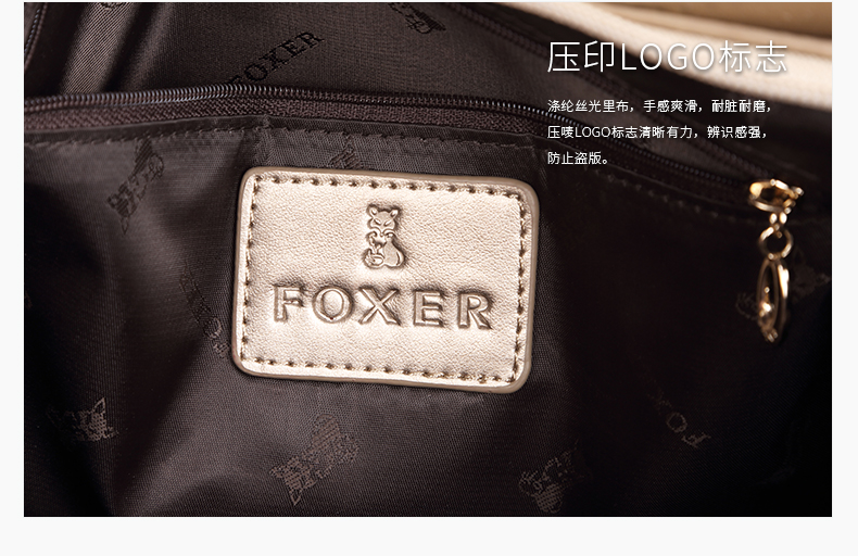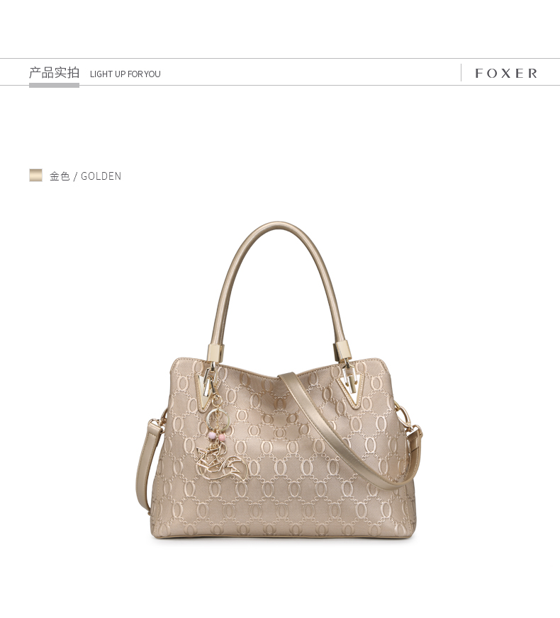 > 金狐狸(FOXER)金狐狸女包 单肩包新款斜跨手提包牛皮拉链欧美时尚大容量真皮女士包包 金色