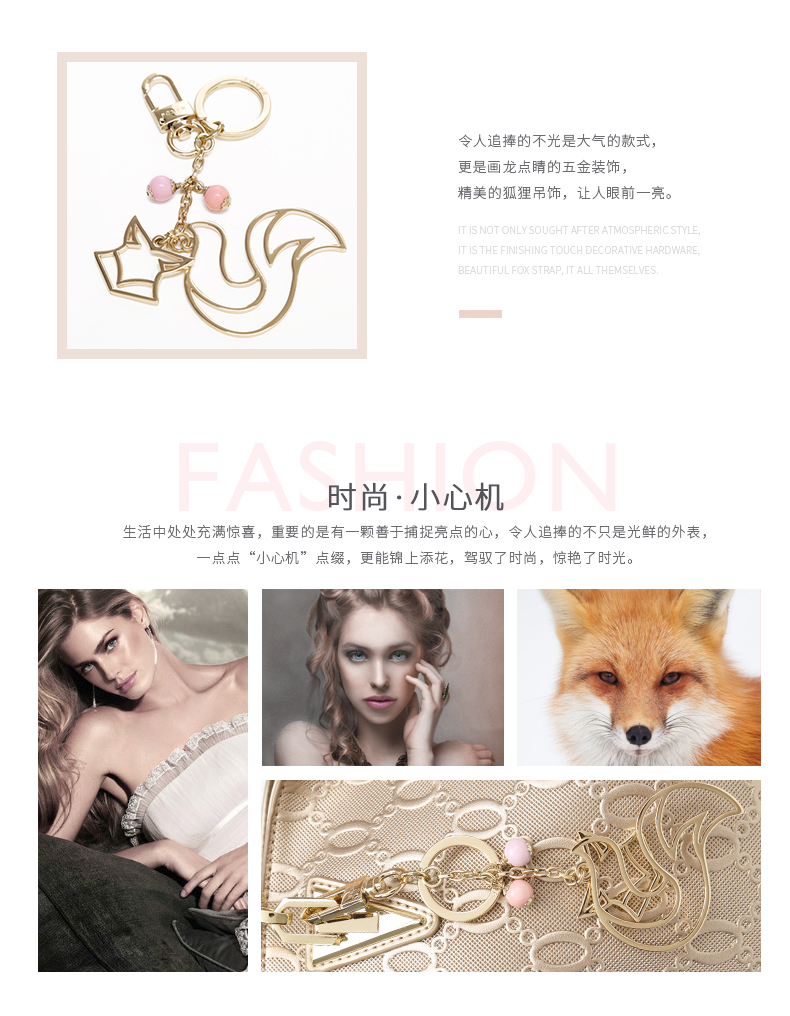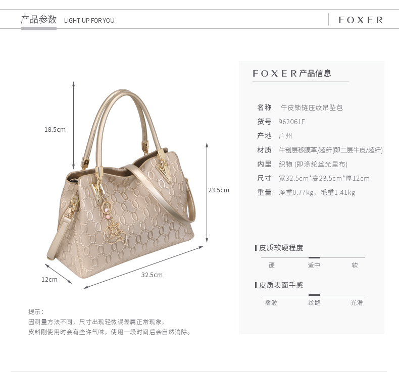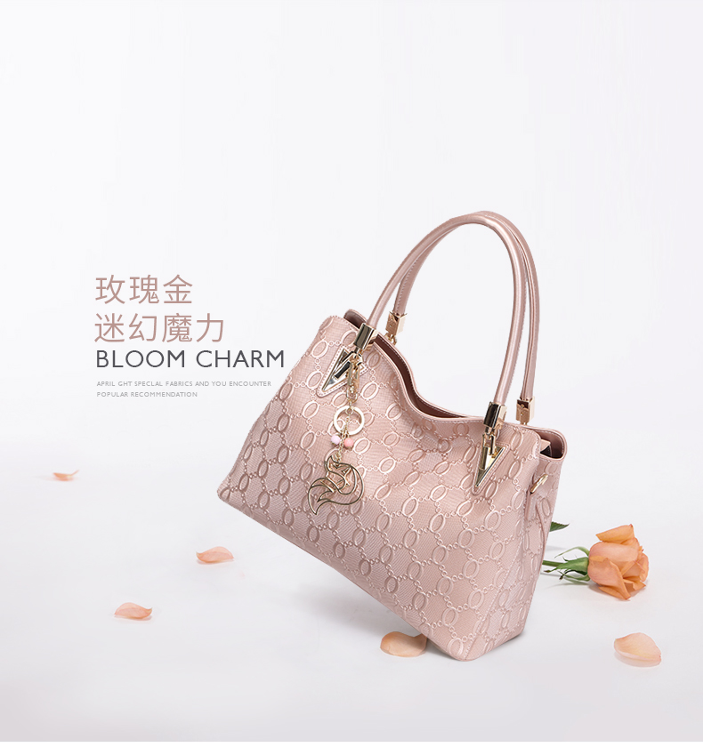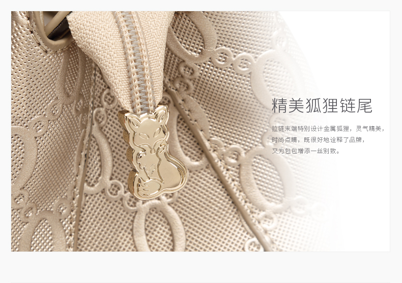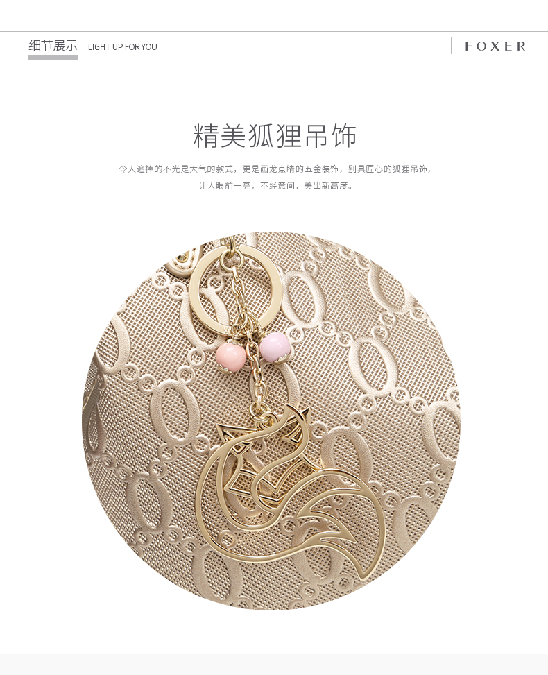金狐狸(FOXER)女包 新款牛皮十字纹狐狸吊饰优雅翅膀包时尚百搭斜挎手提单肩包女6F 958091F玫瑰金