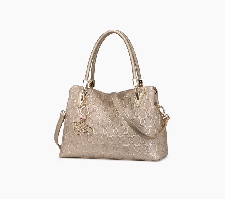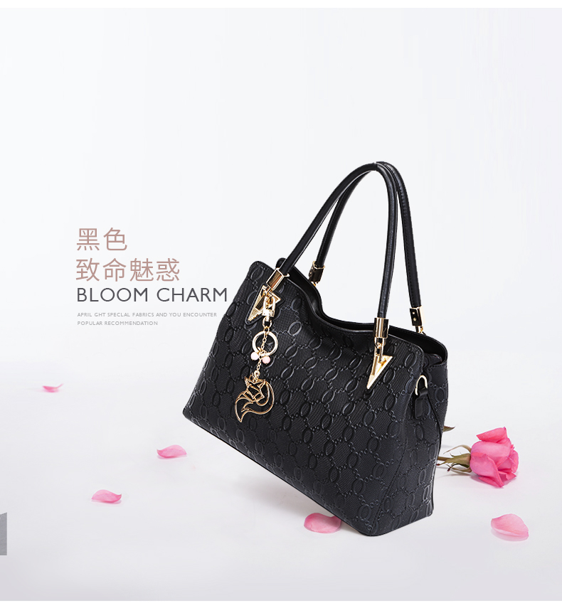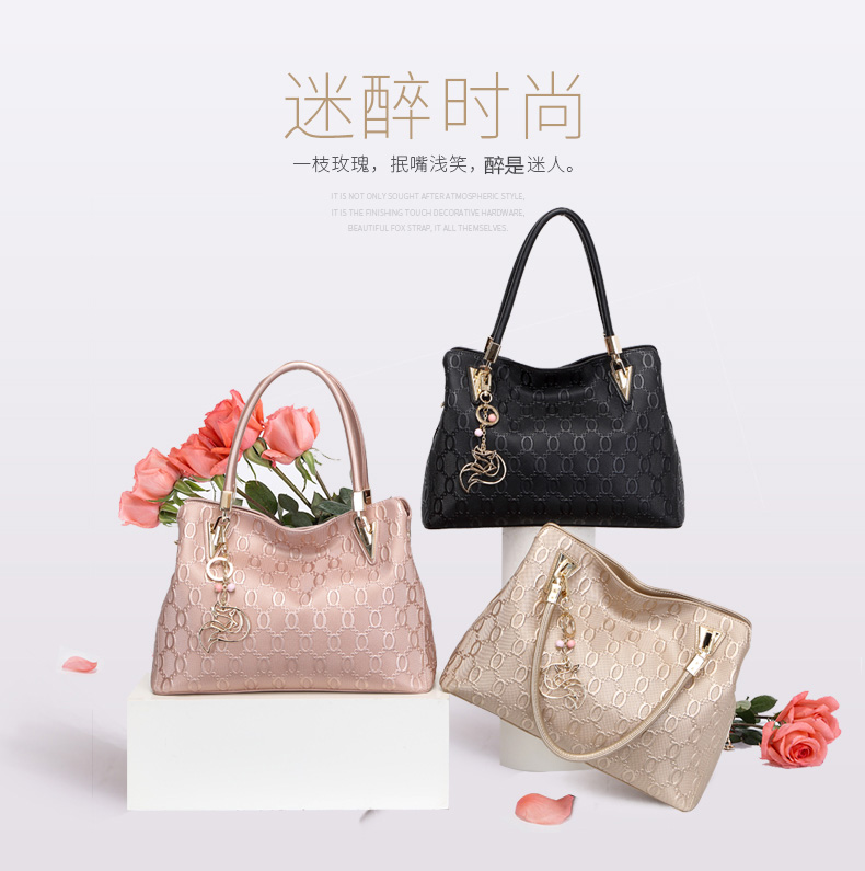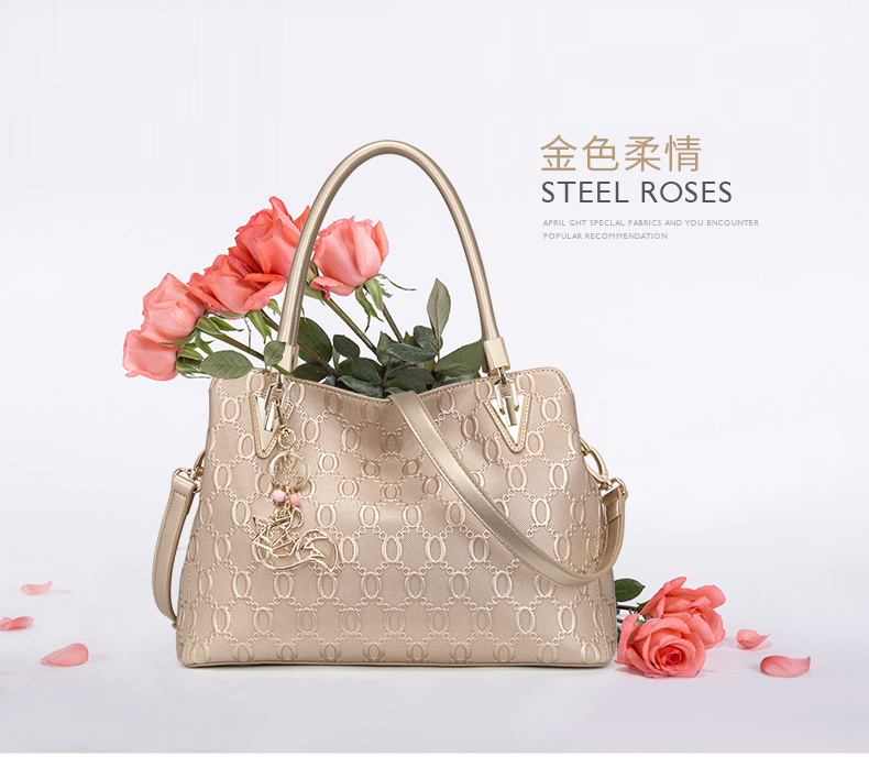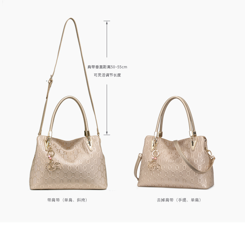 金狐狸(FOXER)女包 新款牛皮十字纹狐狸吊饰优雅翅膀包时尚百搭斜挎手提单肩包女6F 958091F玫瑰金