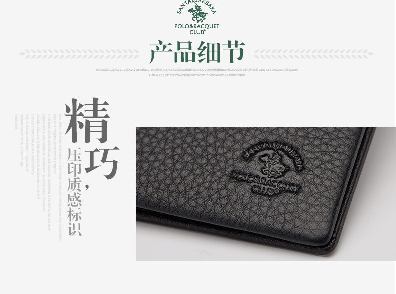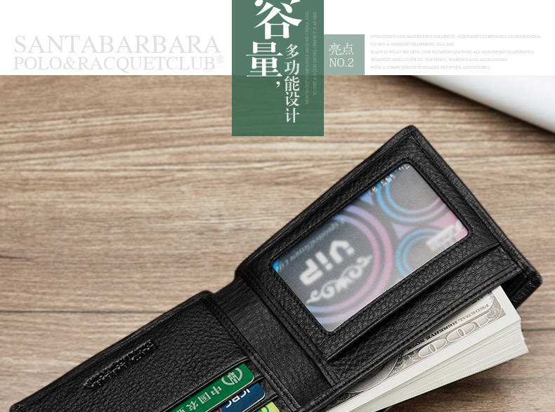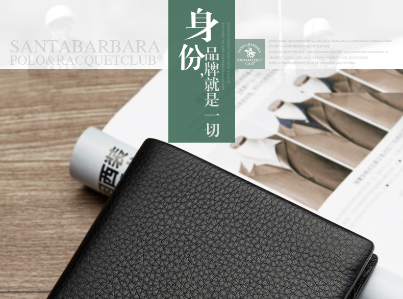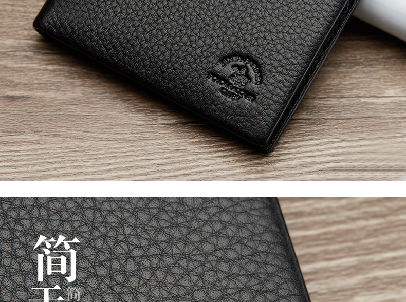 > 圣大保罗男士短款钱包 头层软牛皮钱夹横款票夹 礼盒装 黑色横款