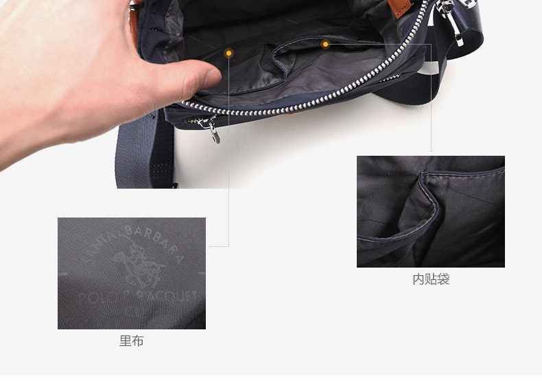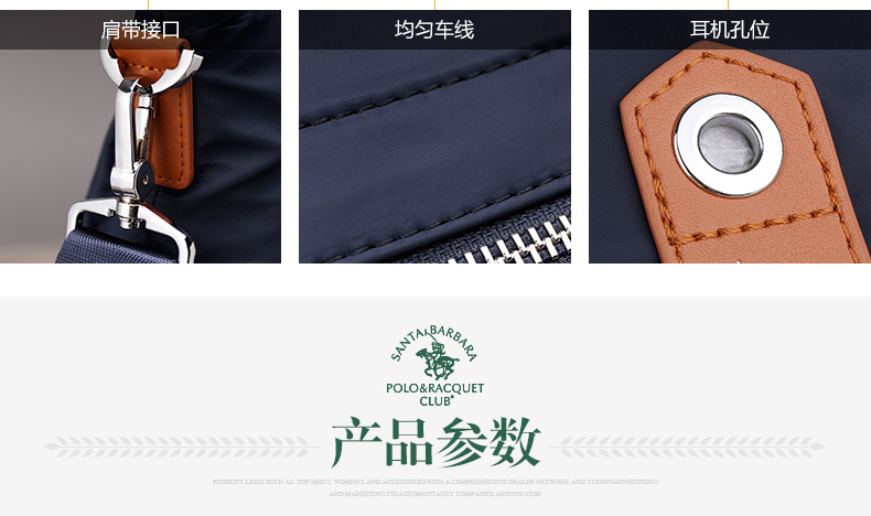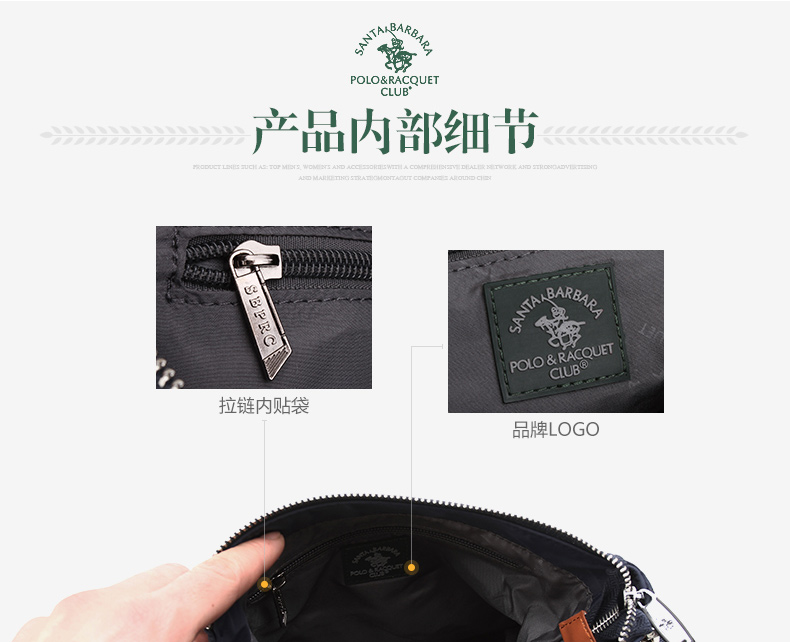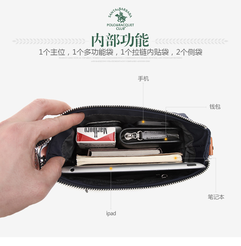 圣大保罗polo头层小牛皮时尚手提商务公文包斜挎单肩男包70268 深蓝色