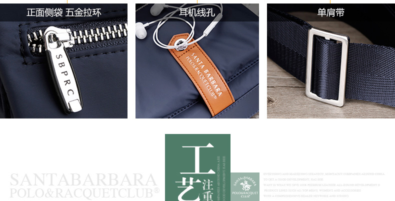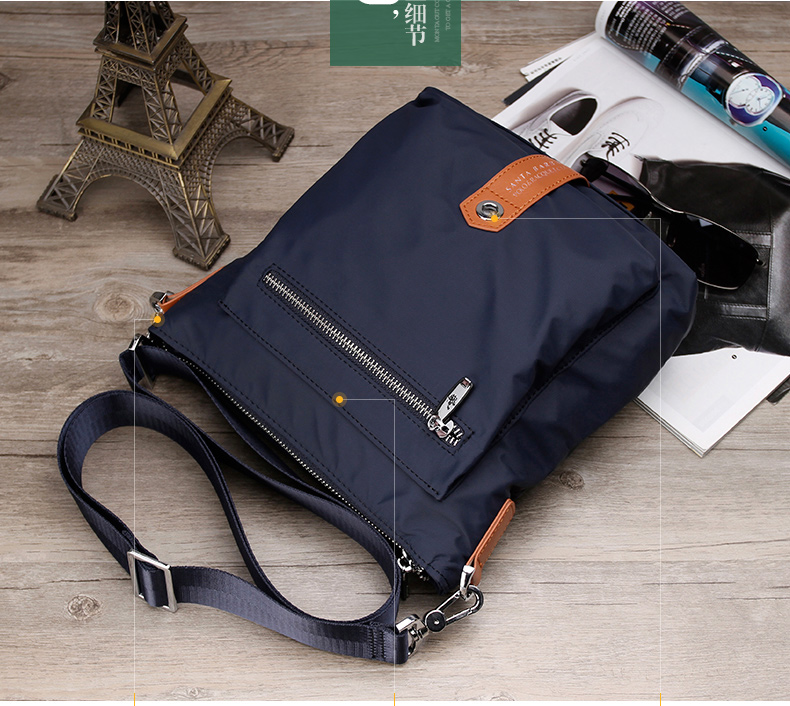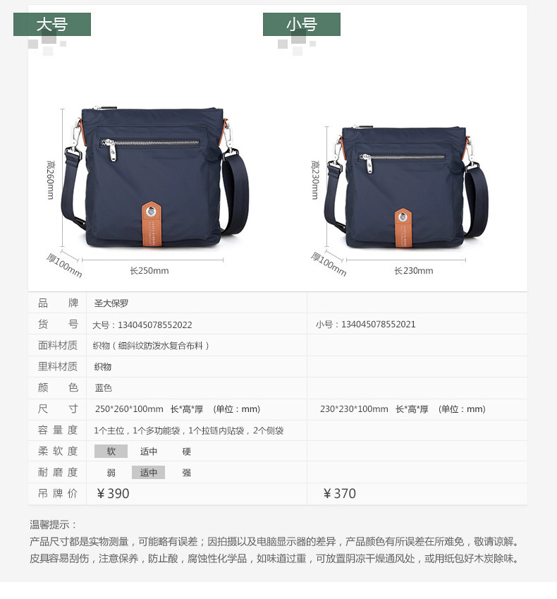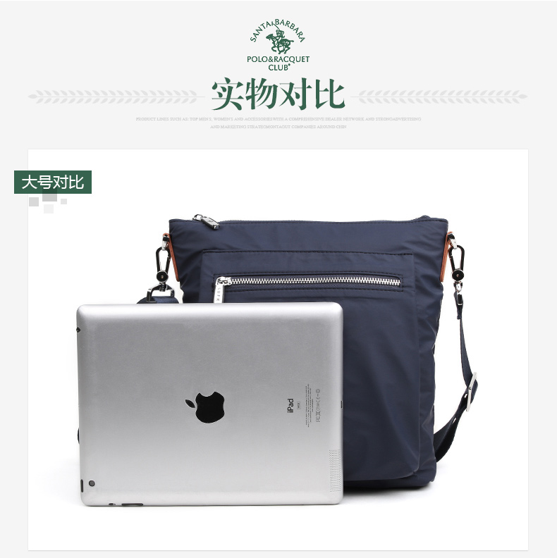 > 圣大保罗男士休闲包运动尼龙帆布包男包单肩斜挎休闲旅行 防水耐磨复合布 蓝色 大号
