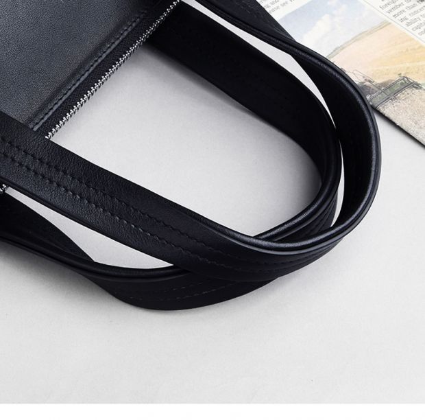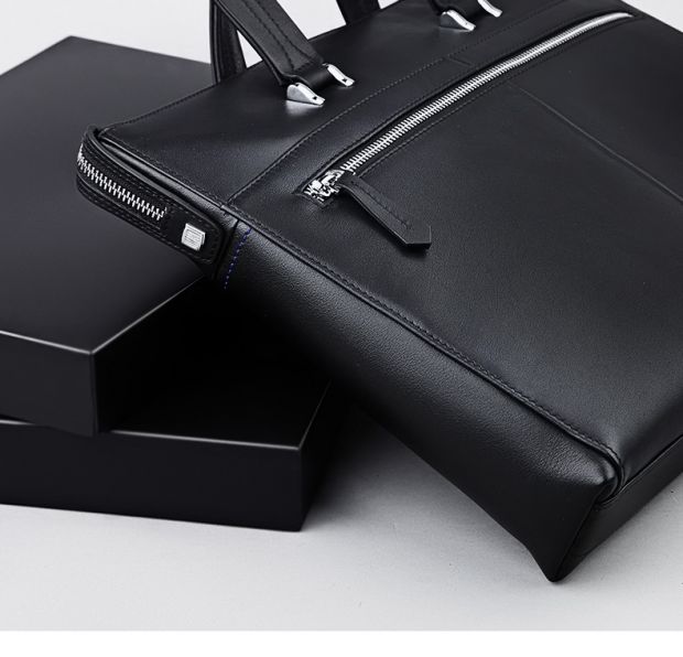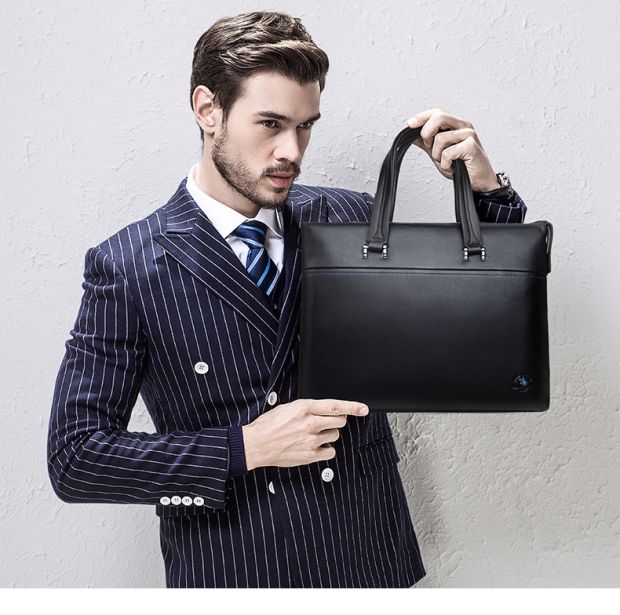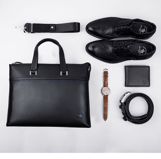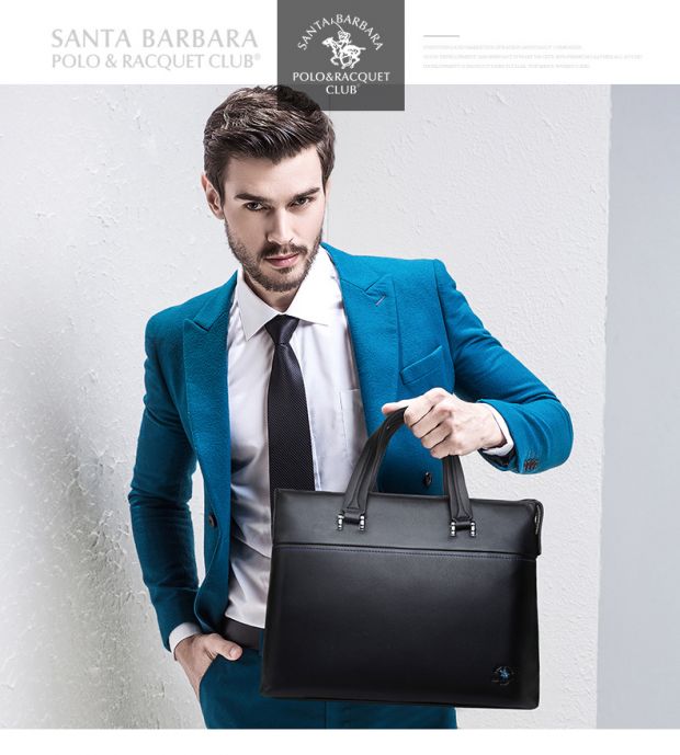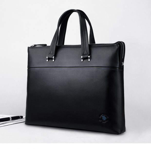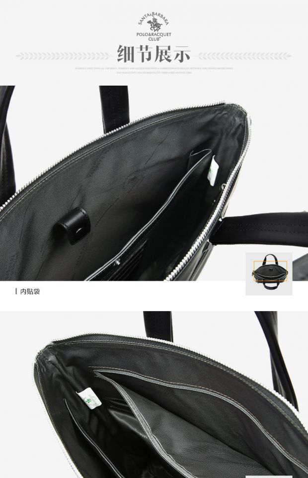 > 圣大保罗polo 男士手提包时尚软皮男包 头层牛皮真皮商务公文包0302909 黑色
