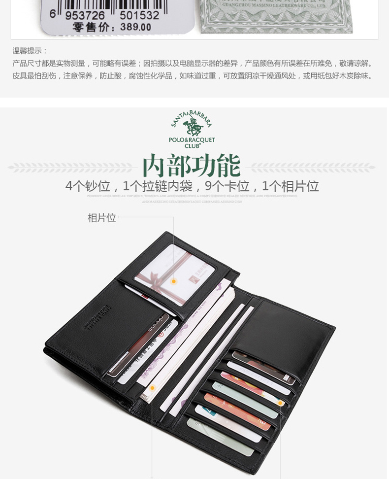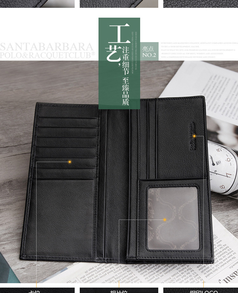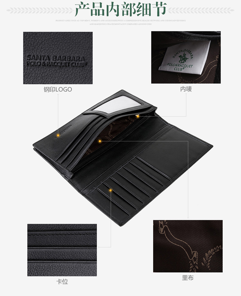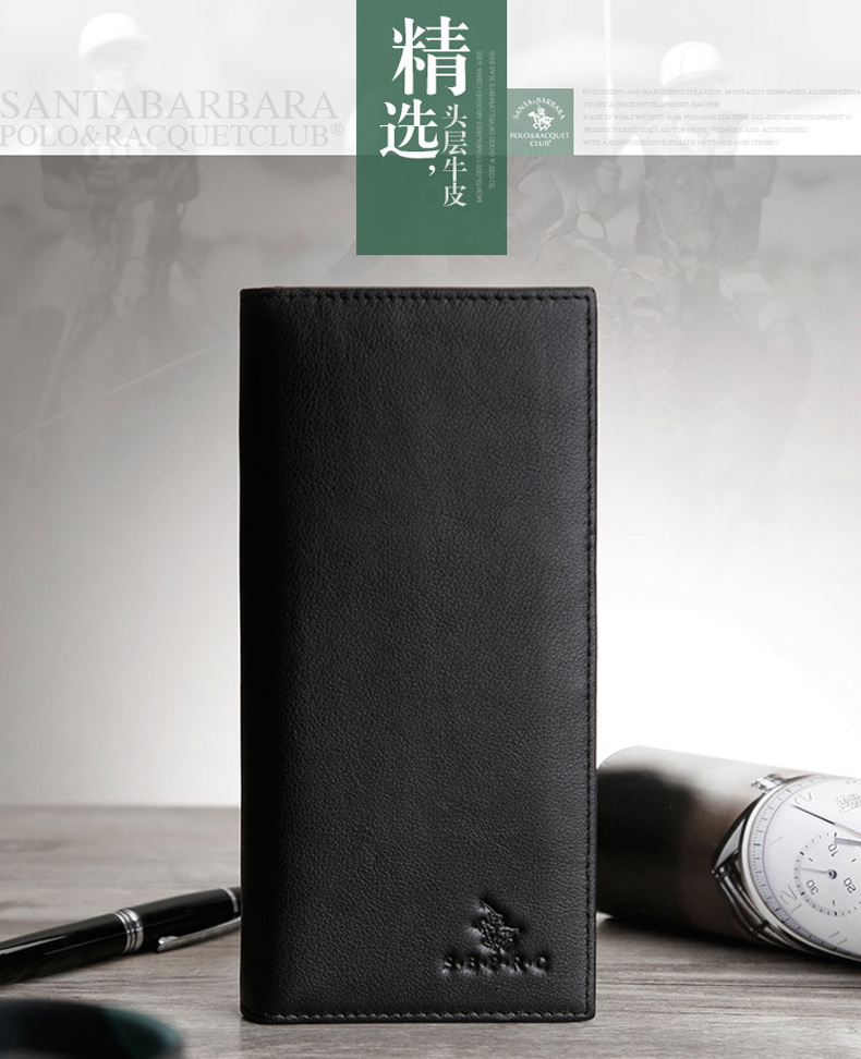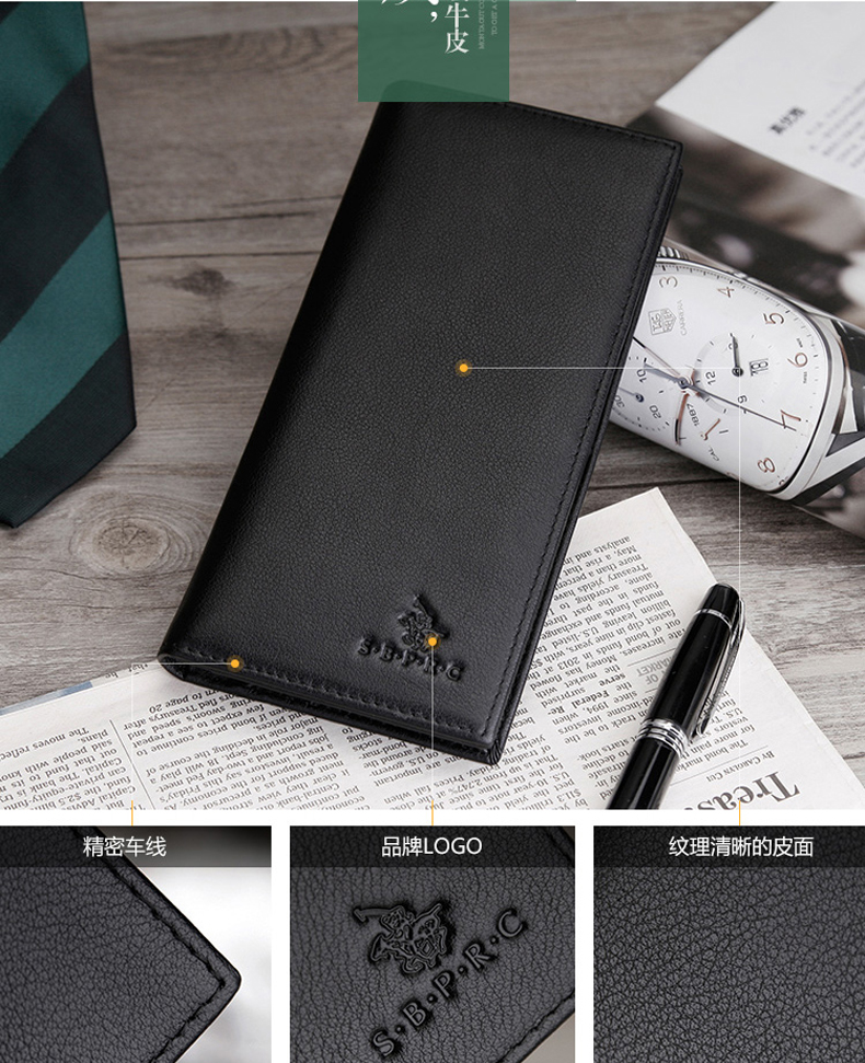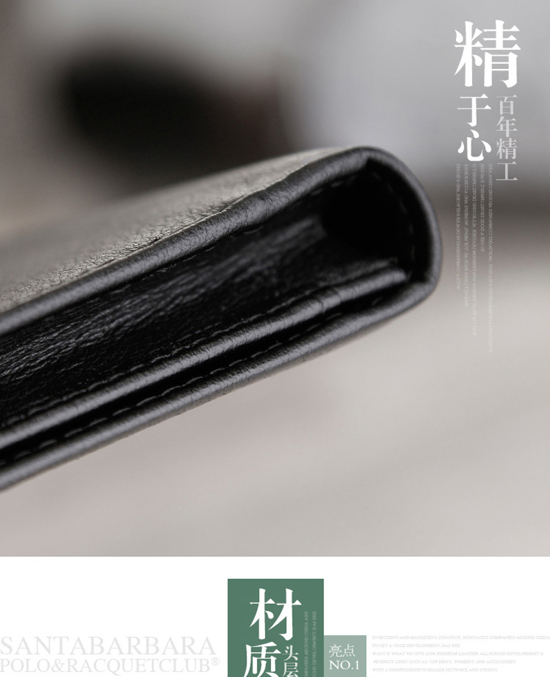 > 圣大保罗钱包男士真皮长款头层牛皮长款票夹商务多卡位钱夹 黑色