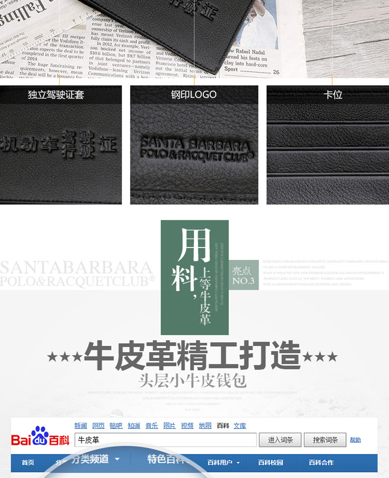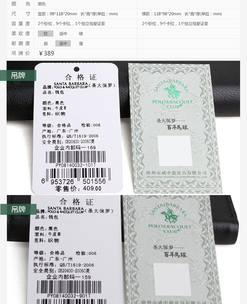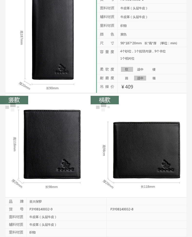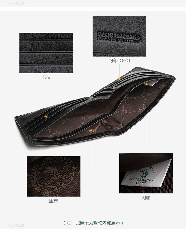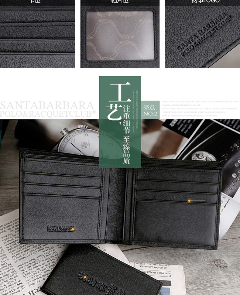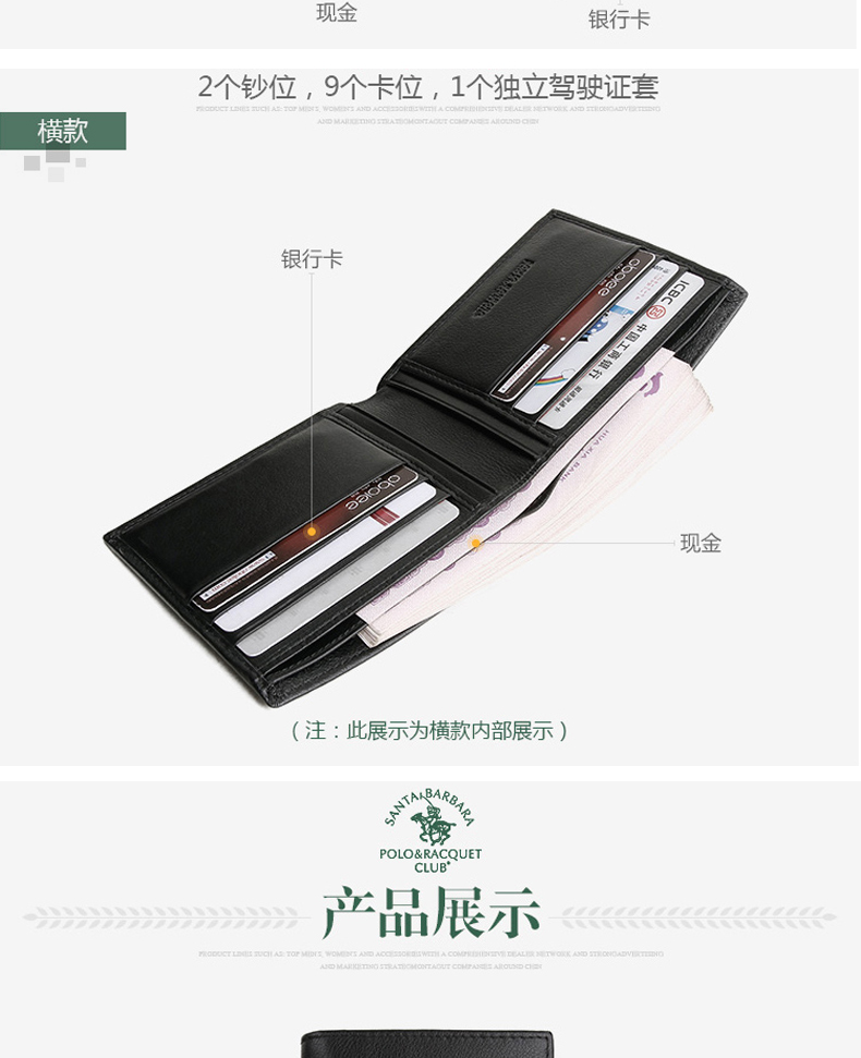 > 圣大保罗钱包男士真皮长款头层牛皮长款票夹商务多卡位钱夹 黑色
