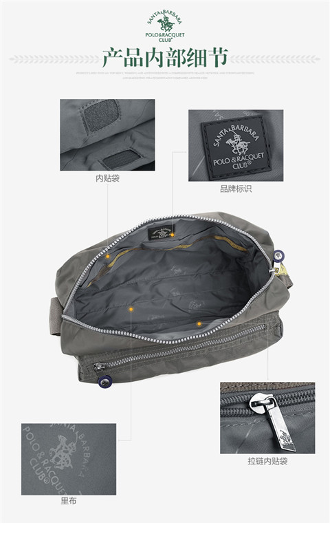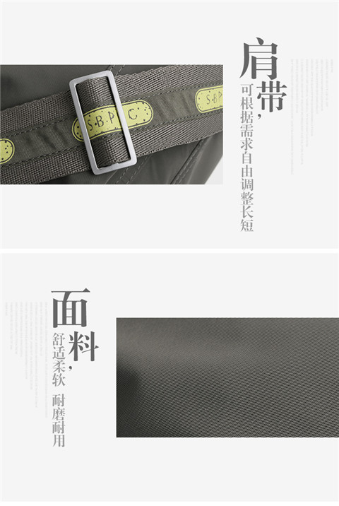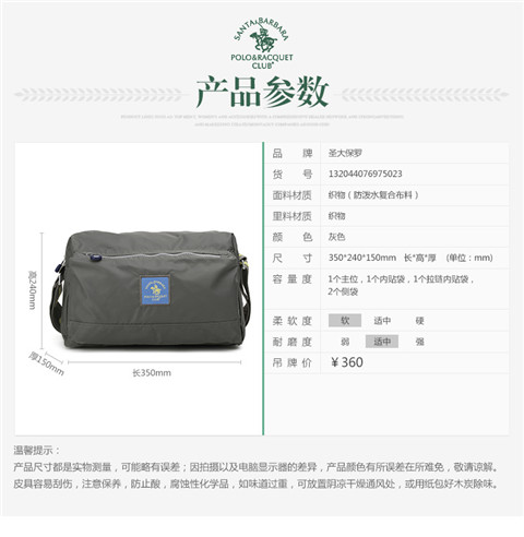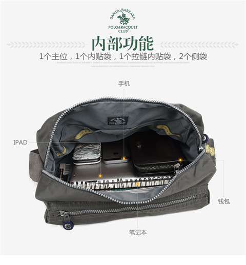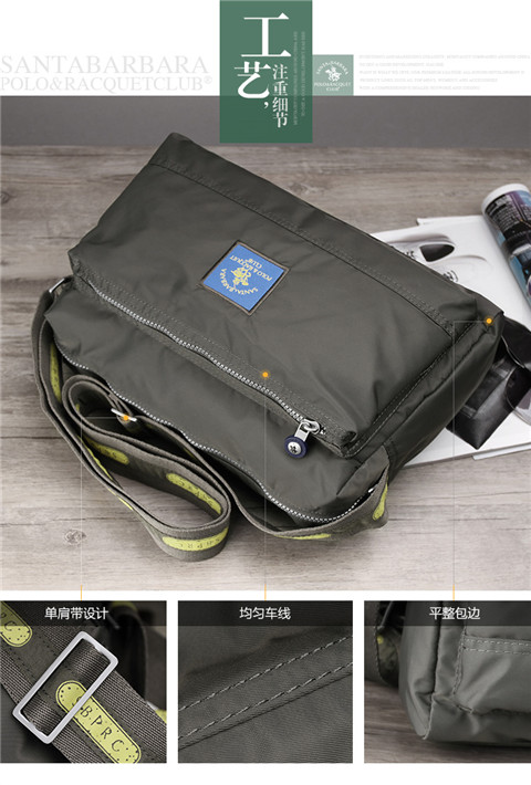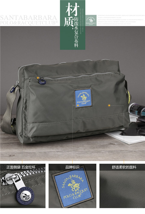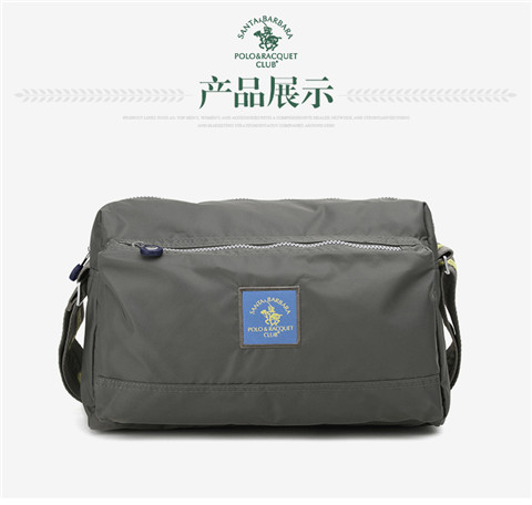 > 圣大保罗polo 休闲包 男包尼龙复古男款斜挎包防水大容量布包 灰绿色