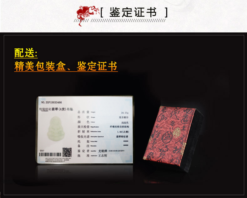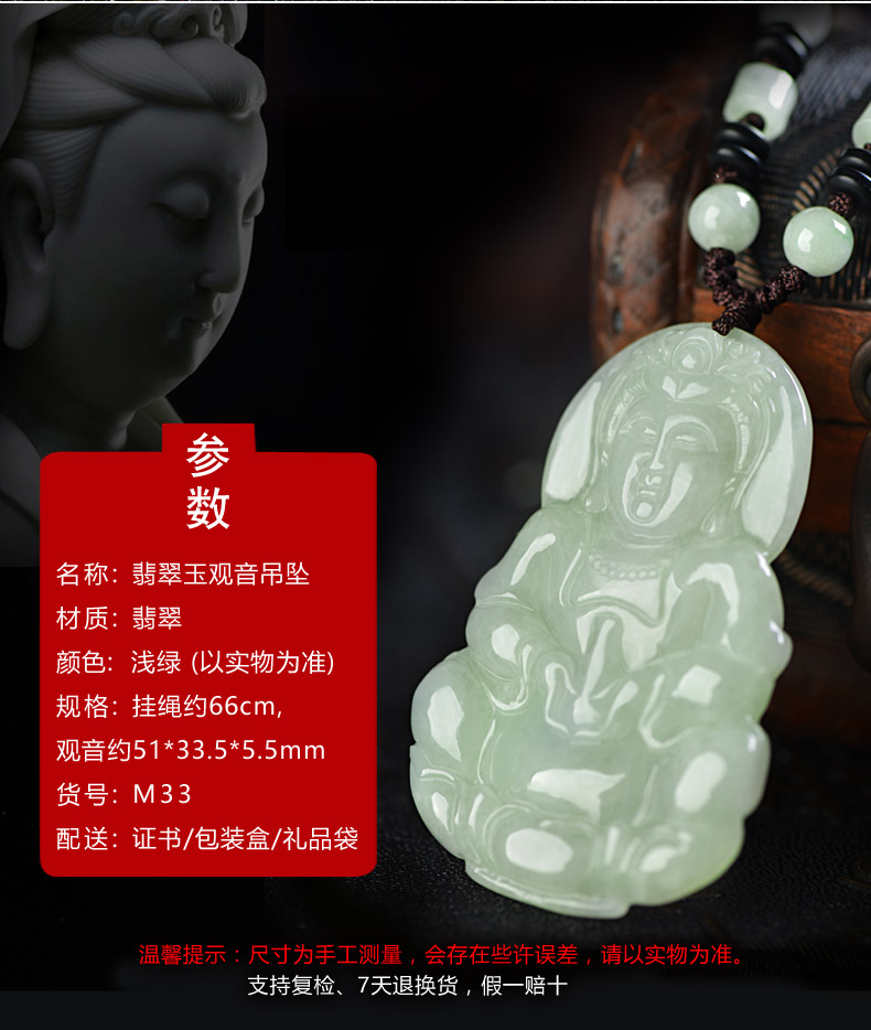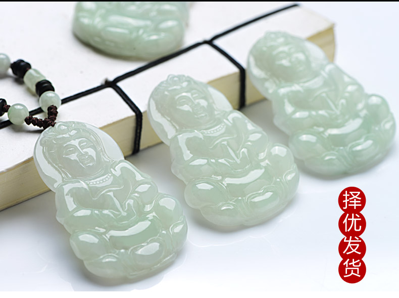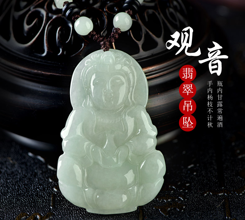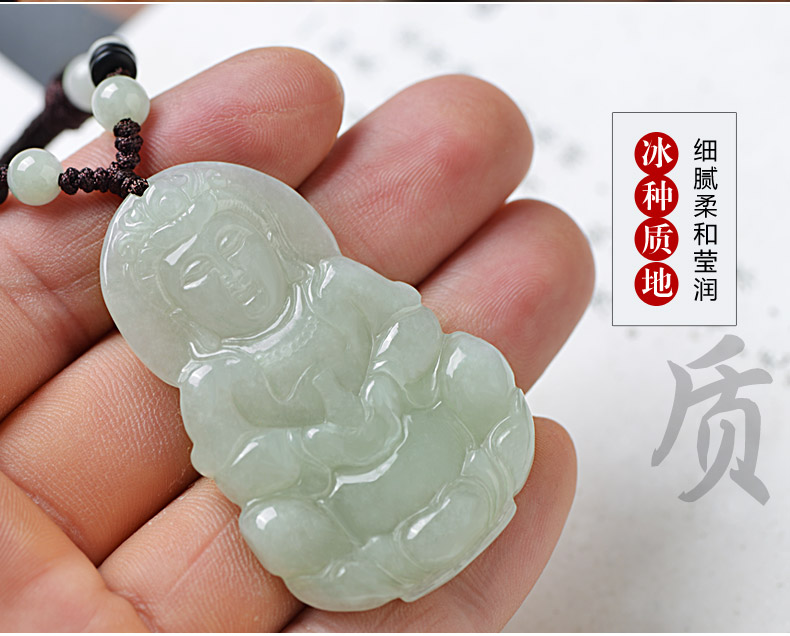> 【推荐抢购】吉如宝 A货翡翠吊坠 玉观音挂件 男款配证书 1