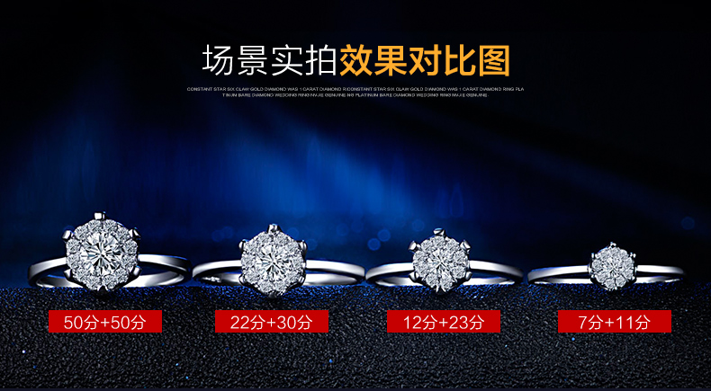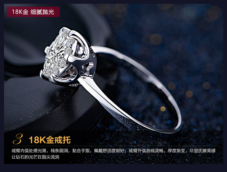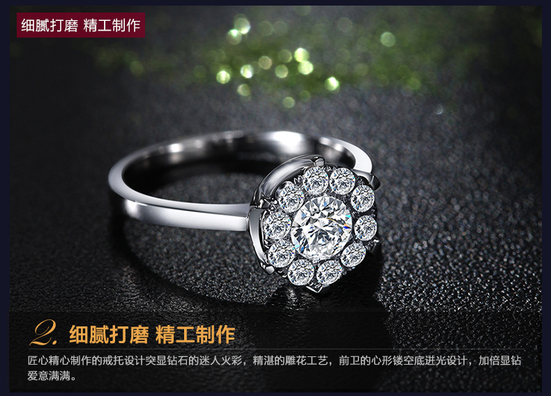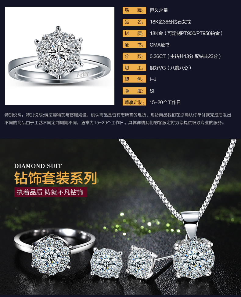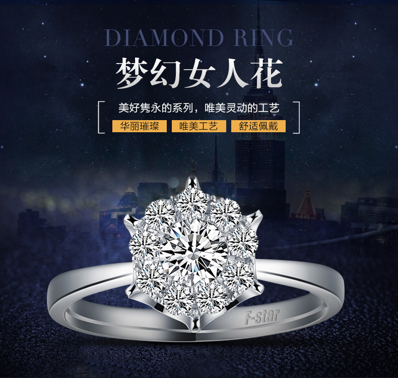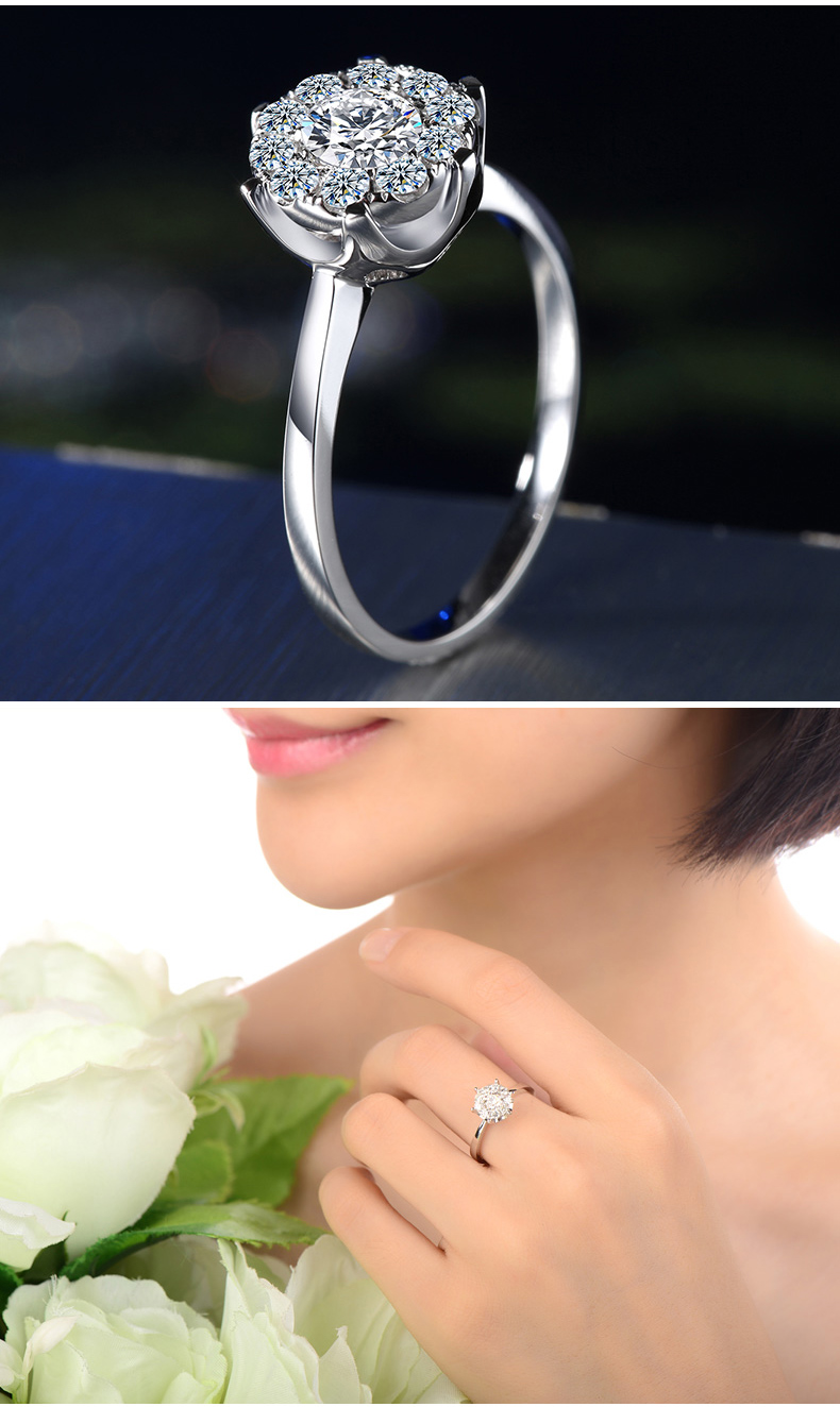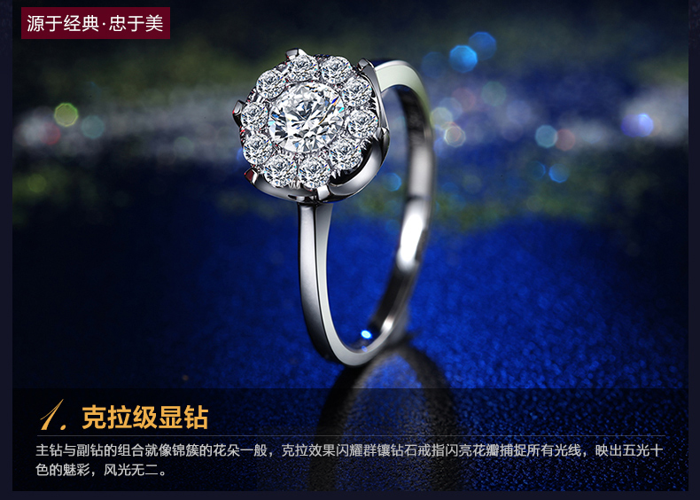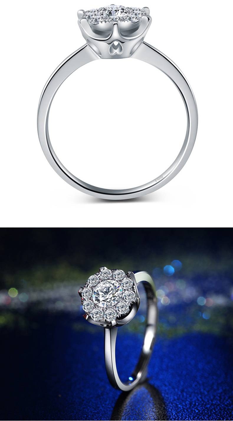 > 恒久之星 女人花18K金钻戒女款群镶克拉钻效果钻石戒指结婚求婚戒指铂金婚戒珠宝裸钻定制 现货 共18分主7+副11 IJ色