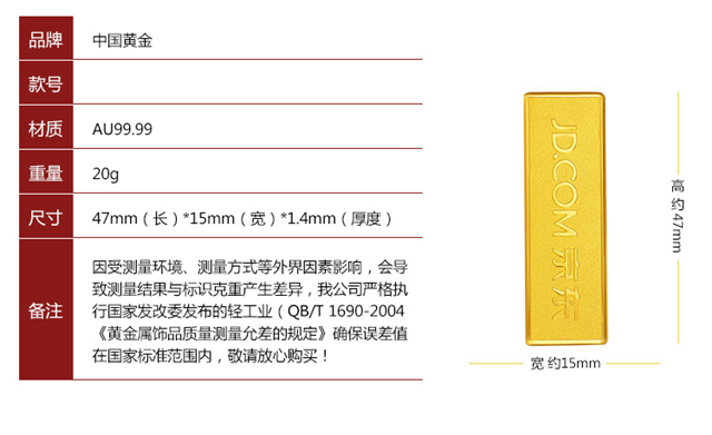 > 京东金条 Au99.99 20g 中国黄金出品 支持回购