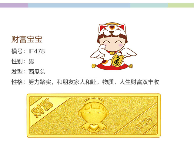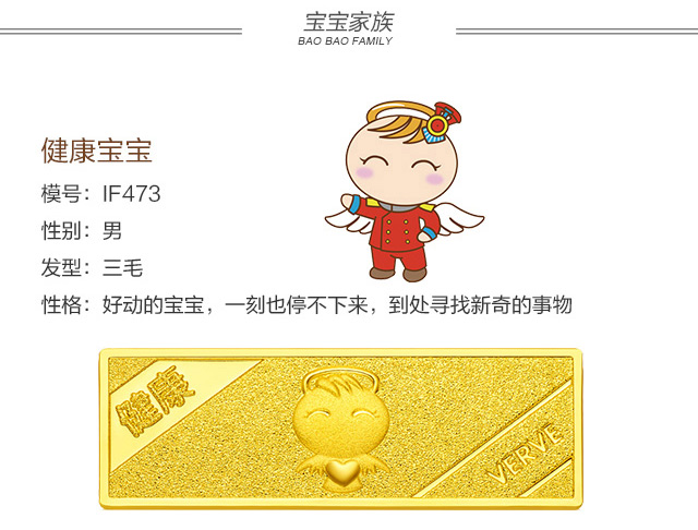 > 周大福 福星宝宝系列 足金黄金投资金条(约:10g计价)IF【多款可选】 IF473健康宝宝 约10.04g