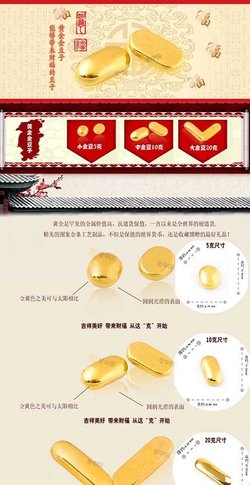 > 金中国 投资产品 Au9999金豆子黄金投资理财金条收藏保值 5克