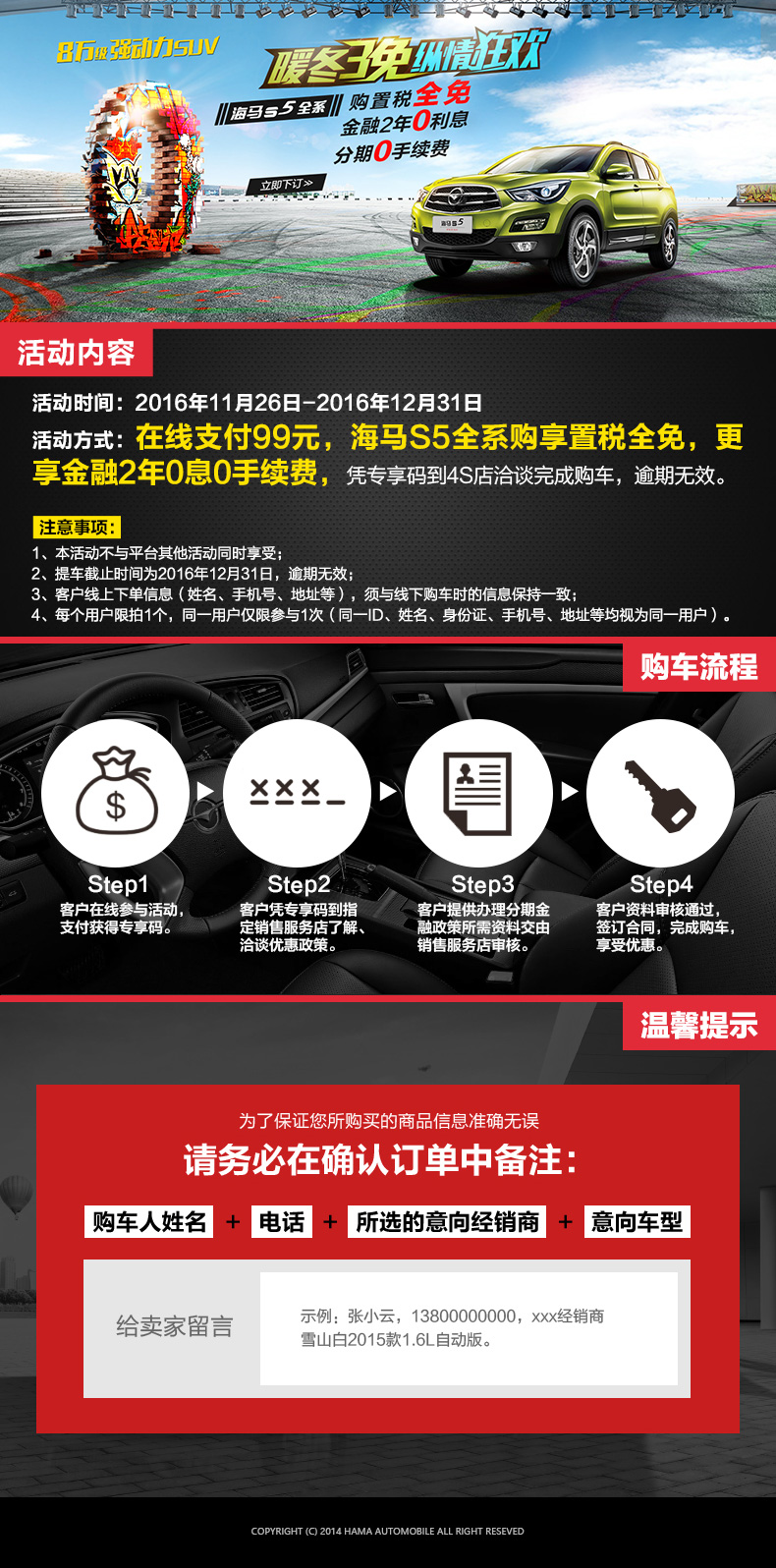 > 【订金】海马汽车 海马S5全系车型税息手续费全免 全新整车 99元下订 1.6L 5MT 豪华型天窗版