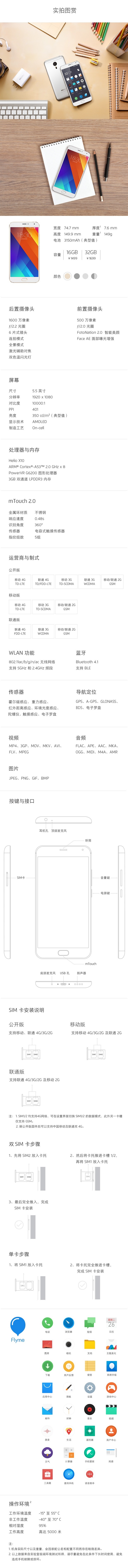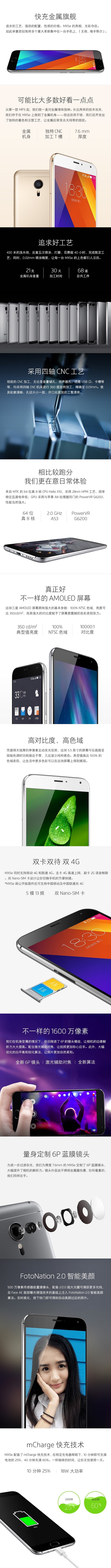 > 魅族 MX5e 16GB 银白色 移动联通双4G手机 双卡双待