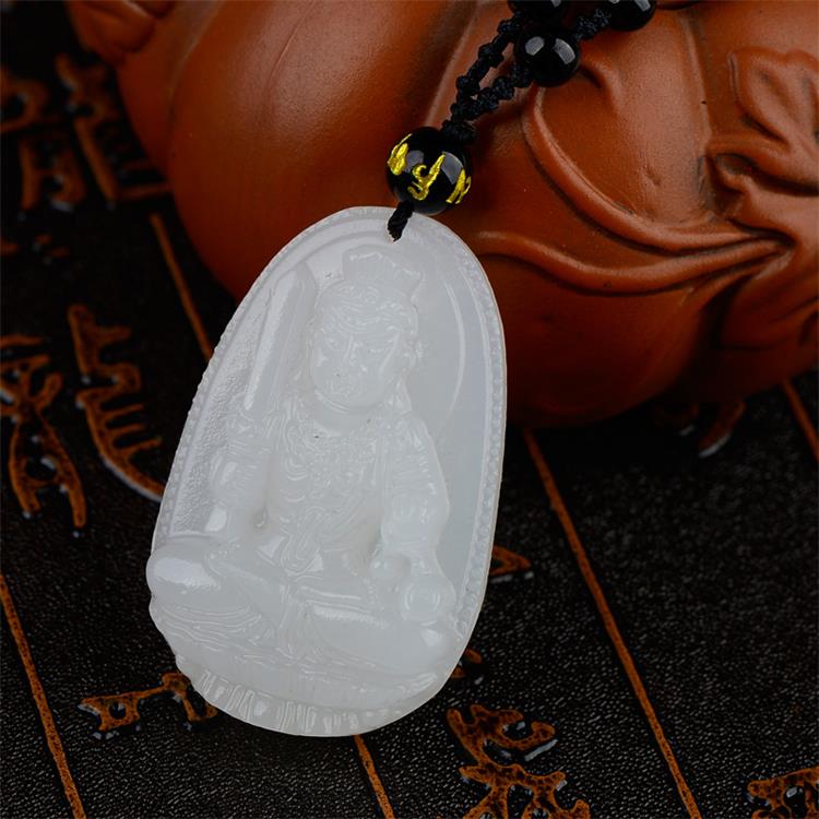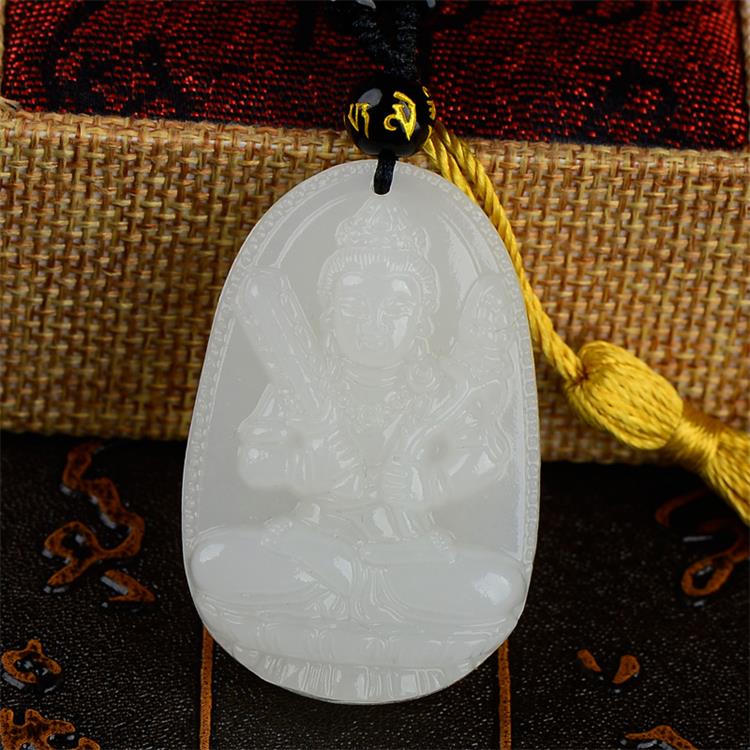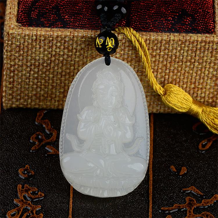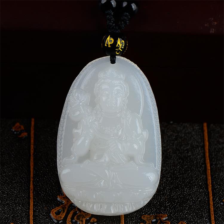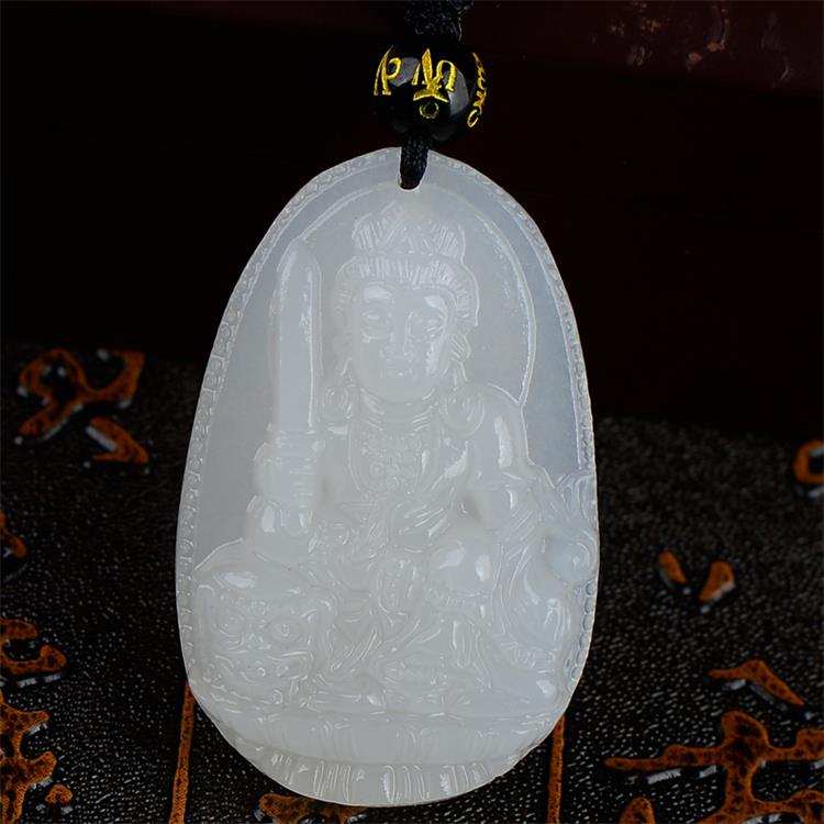 > 玉岳珠宝 天然白玉本命佛吊坠菩萨十二生肖男女吉祥物挂坠八大守护神项链 附带鉴定证书 属龙蛇 普贤菩萨
