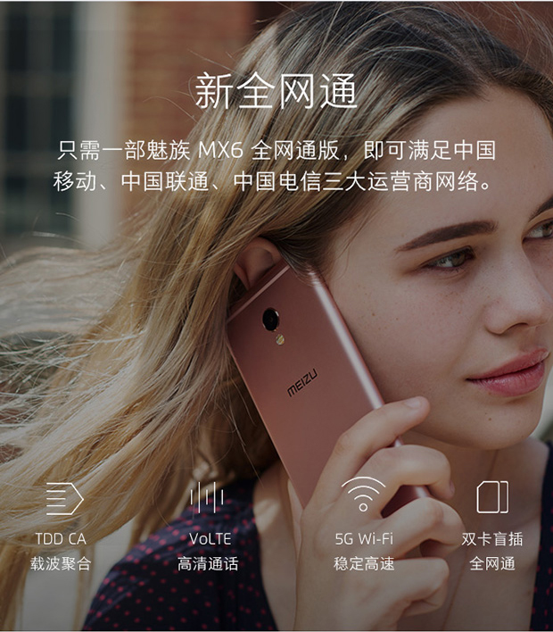 > 魅族 MX6 4GB+32GB 全网通公开版 香槟金 移动联通电信4G手机 双卡双待