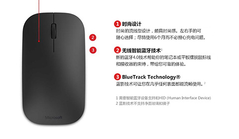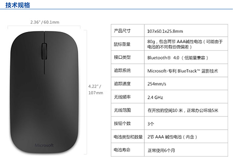 > Microsoft/微软 Designer Mouse 无线蓝牙4.0便携鼠标 黑色