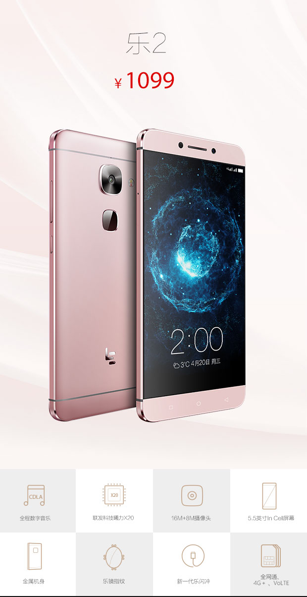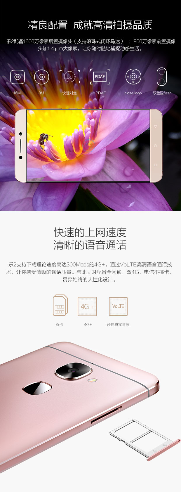 > 乐视(Le)乐2(X620)3GB+32GB 原力金 移动联通电信4G手机 双卡双待
