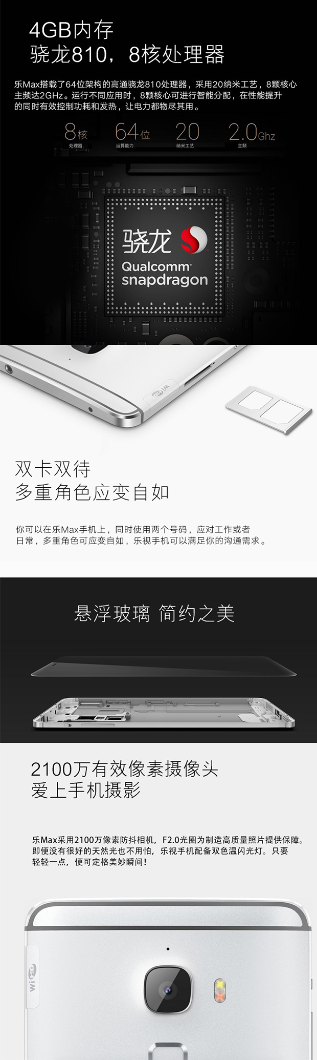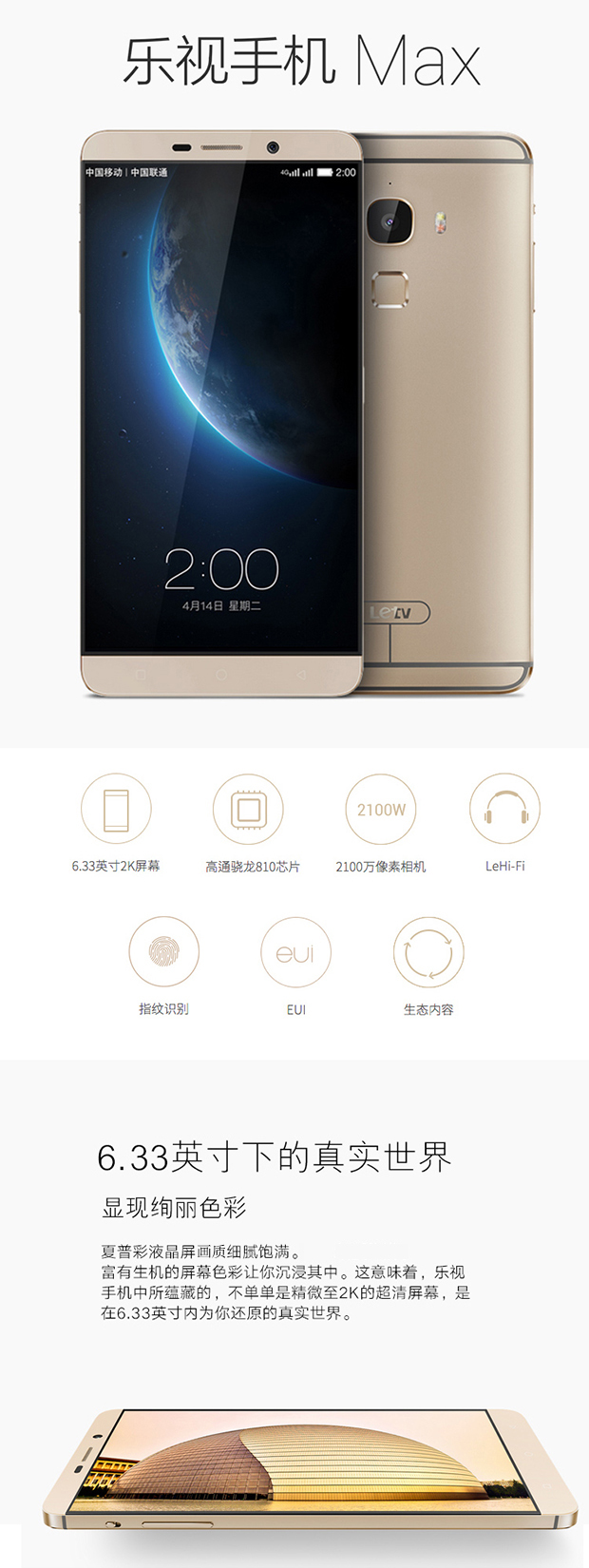 > 乐视(Letv)乐Max(X900)4GB+64GB 银色 移动联通4G手机 双卡双待