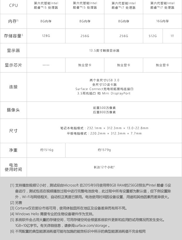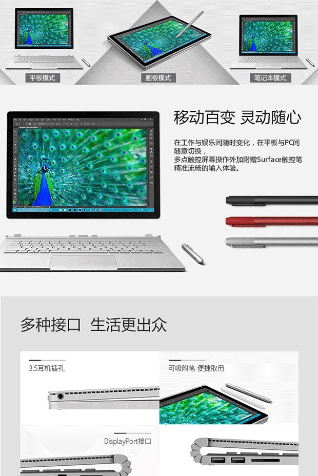 > 微软(Microsoft)Surface Book 二合一平板笔记本 13.5英寸(Intel i5 8G内存 128G存储)银色