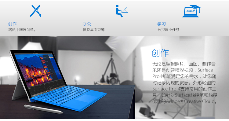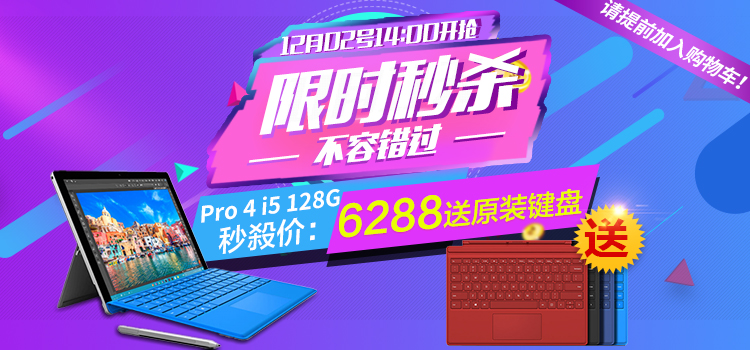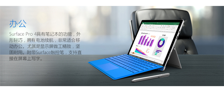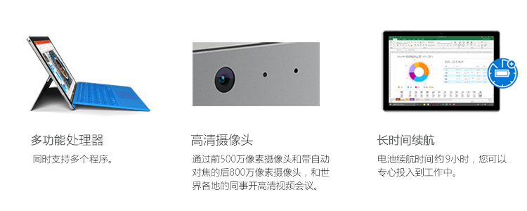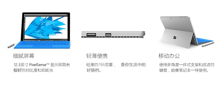 > 【送原装键盘】微软Surface Pro 4 平板电脑二合一 Win10笔记本 i5/128G储存/4G内存 送原装键盘