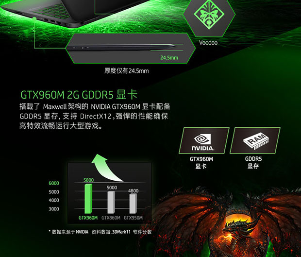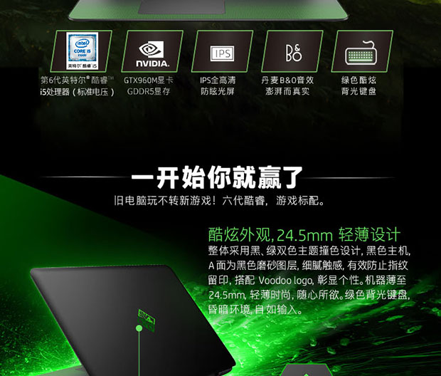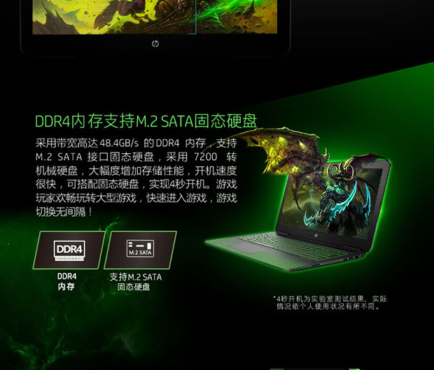 > 惠普(HP)暗影精灵II代精灵绿 15.6英寸游戏笔记本(i5-6300HQ 4G 128SSD+1T GTX960M 2G独显 GDDR5
