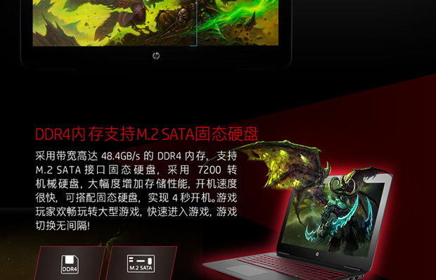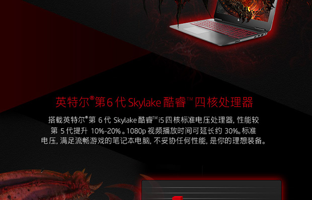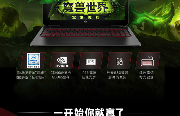 > 惠普(HP)暗影精灵II代 15.6英寸游戏笔记本(i5-6300HQ 4G 128SSD+1T GTX960M 2G GDDR5