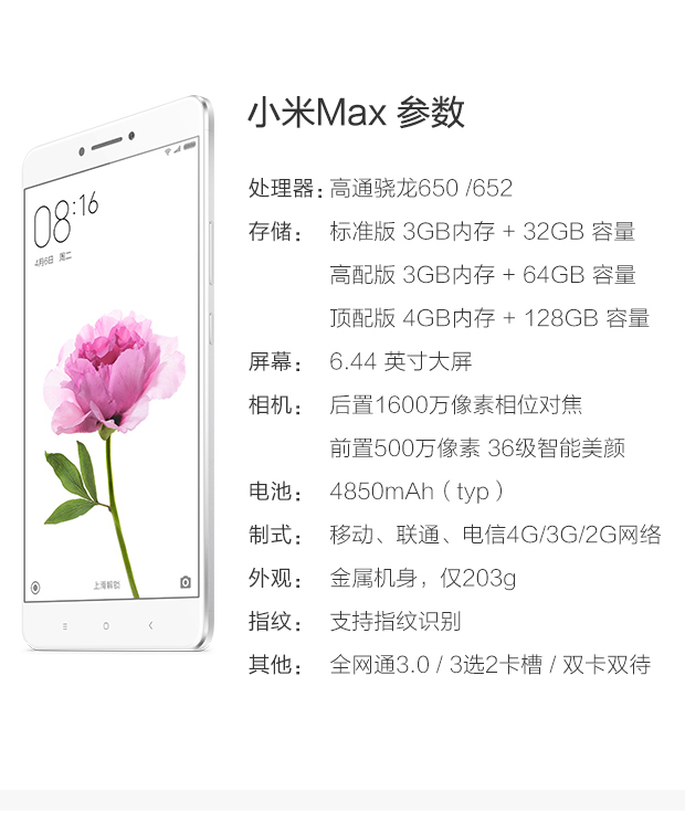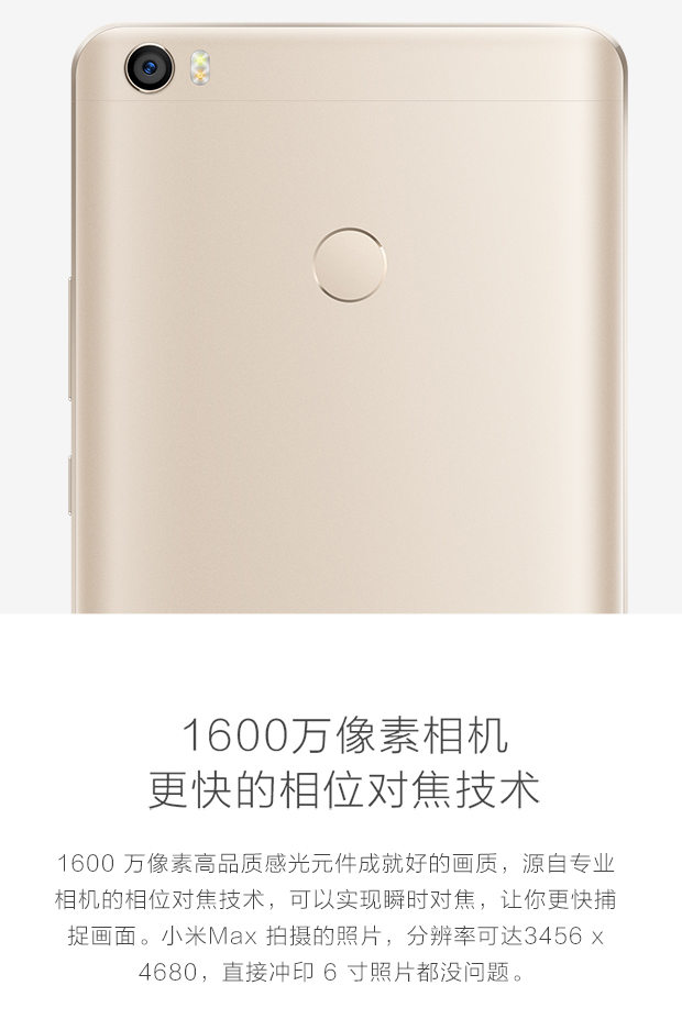 > 小米 Max 全网通 3GB内存 32GB ROM 金色 移动联通电信4G手机