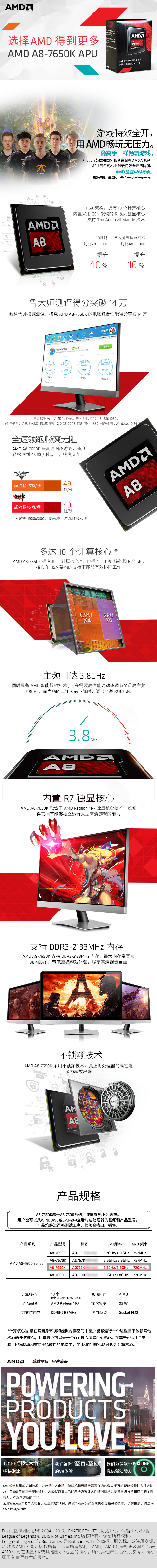 > AMD APU系列 A8-7650K 四核 R7核显 FM2+接口 盒装CPU处理器