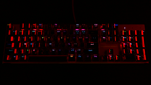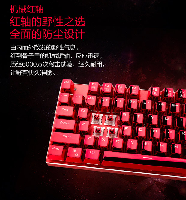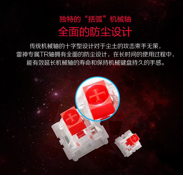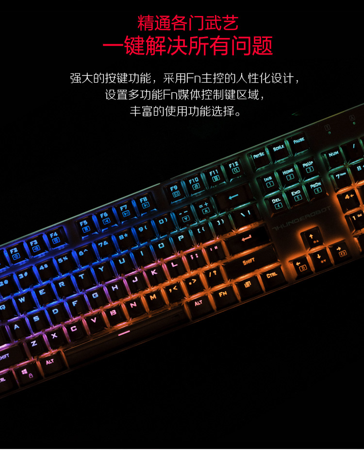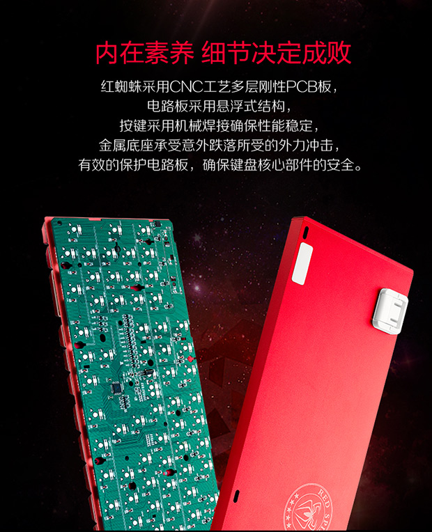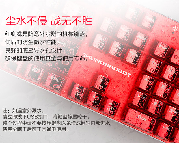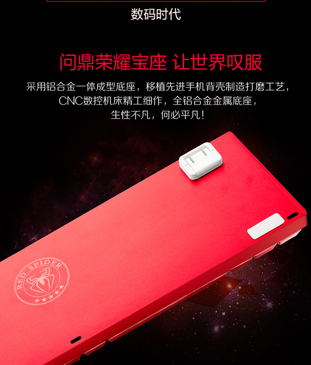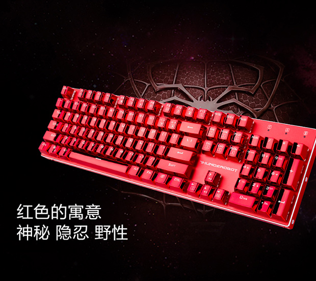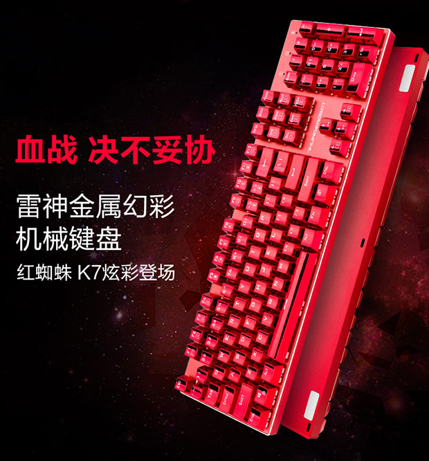 > 雷神(ThundeRobot)红蜘蛛K75R 全铝合金键身RGB幻彩背光 电镀键帽机械键盘 玛瑙红 红轴 104键