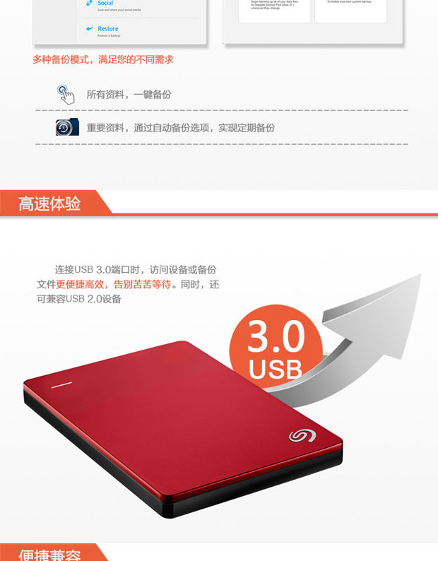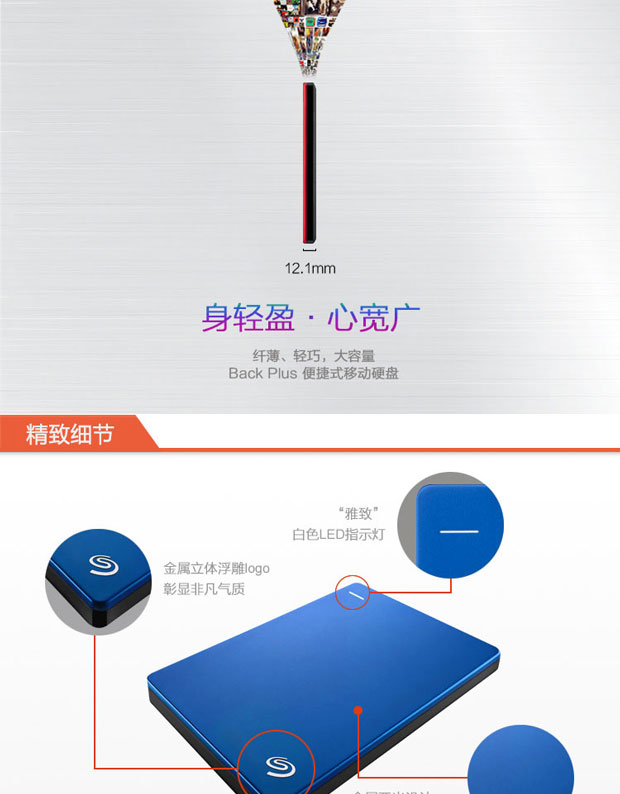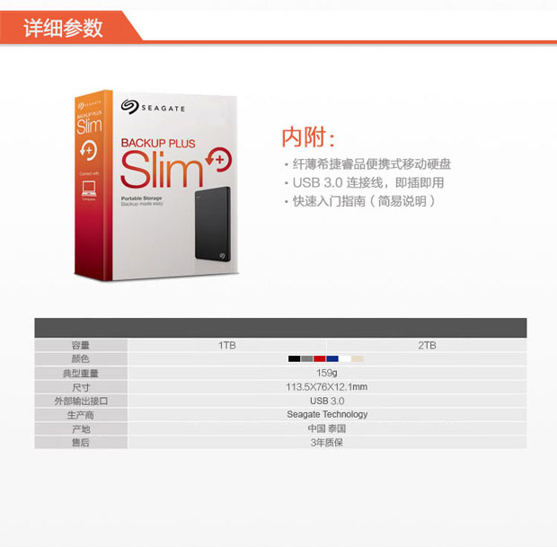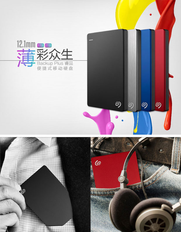 > 希捷(Seagate) Backup Plus睿品(升级版) 2T 2.5英寸 USB3.0移动硬盘 陨石黑(STDR2000300)