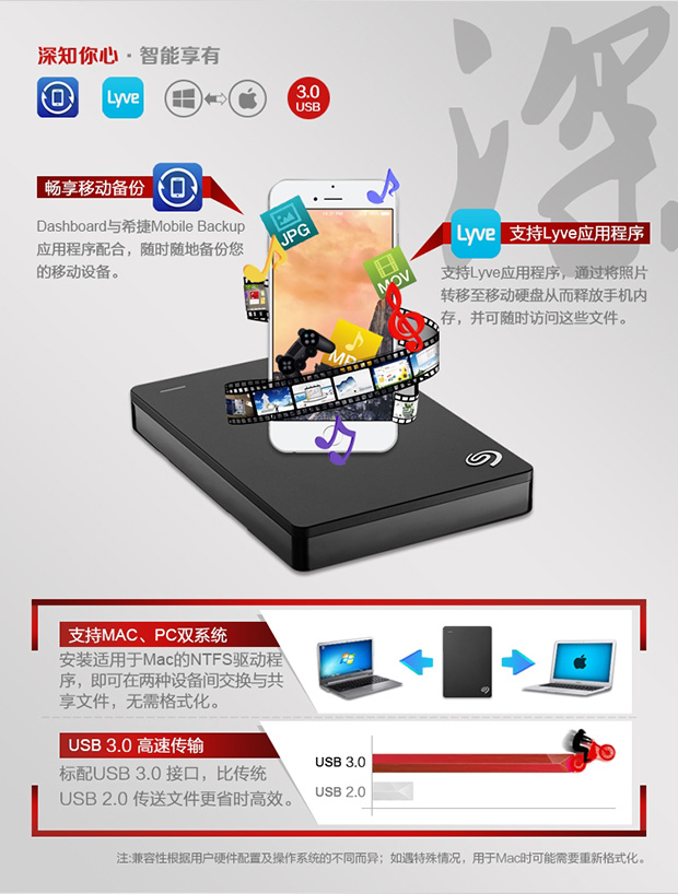 > 希捷(Seagate)2.5英寸 Backup Plus 新睿品 4T USB3.0 便携式移动硬盘 黑色版( STDR