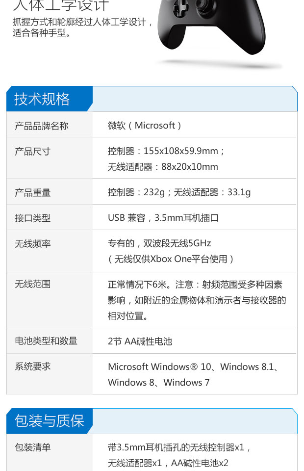 > 微软(Microsoft)XBOX ONE 控制器+ WINDOWS 适用的无线适配器