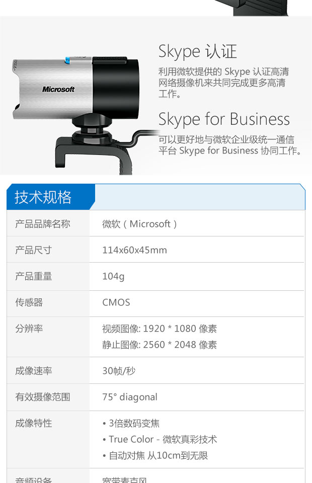> 微软(Microsoft)LifeCam Studio 摄像头 梦剧场精英版 黑色